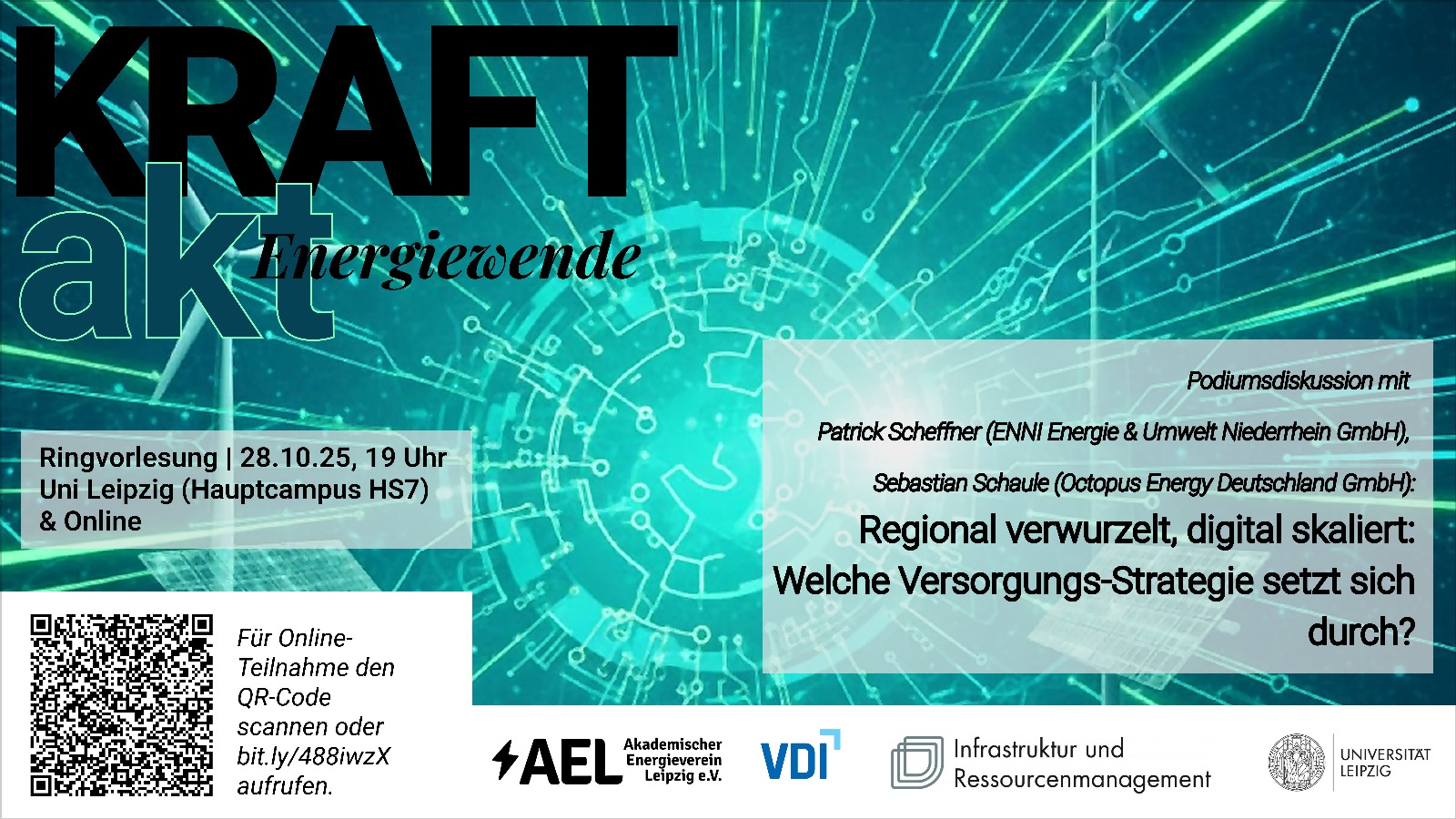 Die Auftaktveranstaltung findet am Dienstag, dem 28.10.25, um 19 Uhr im Hörsaal 7 (Standort: 2. OG Universitätsstr. 3) statt. Euch erwartet eine spannende Podiumsdiskussion zwischen der ENNI Moers und Octopus Energy. Gemeinsam werfen wir einen Blick auf unterschiedliche Geschäftsmodelle, Zielgruppen und Zukunftsperspektiven.